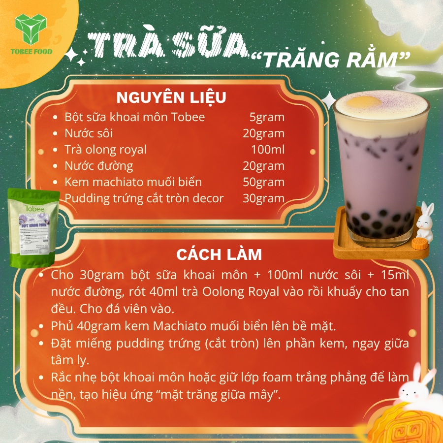Đây là món best-seller dễ pha chế, phù hợp với nhiều nhóm khách hàng từ học sinh đến người lớn tuổi. Ngoài ra, trang trí ly một chút bột khoai môn tím hoặc cắt pudding trứng thành hình mặt trăng vàng cho không khí Trung Thu thêm sinh động.