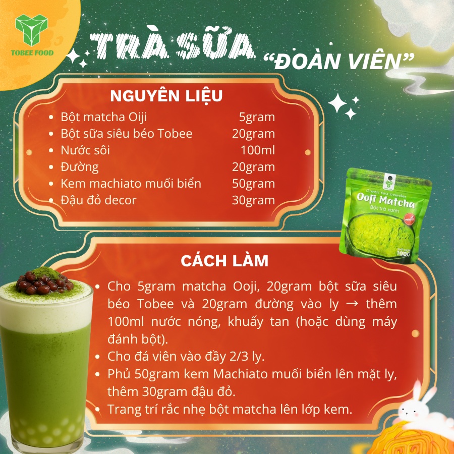 Với Matcha Ooji của Tobee Food, vị trà xanh giữ được mùi thơm đặc trưng và màu sắc tự nhiên, hòa quyện cùng sữa và topping đậu đỏ bùi béo.