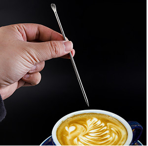 - Latte Art – nghệ thuật thả hồn vào những ly café– đây là loại hình nghệ thuật độc đáo được thể hiện trên các ly cà phê. Các hình thù được vẽ lên từ sữa và các nguyên liệu như chocolate, cốm, đã tạo ra các bức tranh thật đẹp cho từng ly cafe. Với Bút Vẽ Latte Art sẽ là dụng cụ cực kì thú vị cho các Barista dùng để tạo hình latte nghệ thuật.