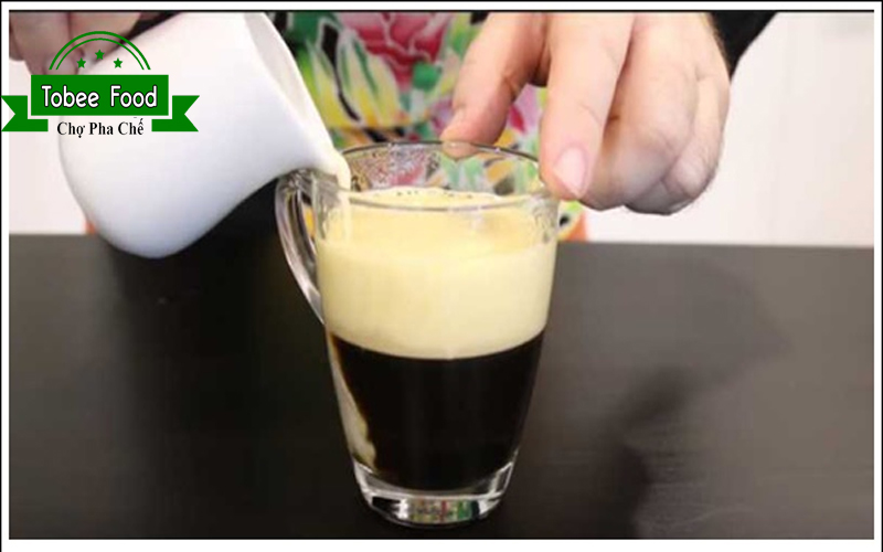 Cafe sau khi chiết xuất xong thì ta lấy phin ra khỏi miệng cốc và cho kem trứng đã đánh vào (dùng thìa để giảm tốc độ chảy của kem trứng).
