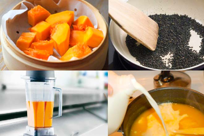 Hướng dẫn cách nấu sữa bí đỏ mè đen hương vị siêu lạ, độc đáo.
