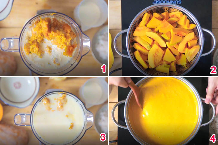Các bước nấu sữa bí đỏ truyền thống này khá đơn giản.