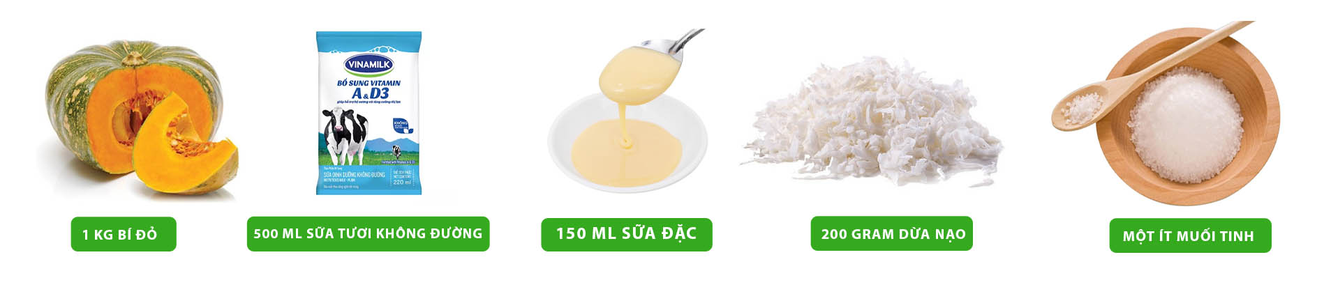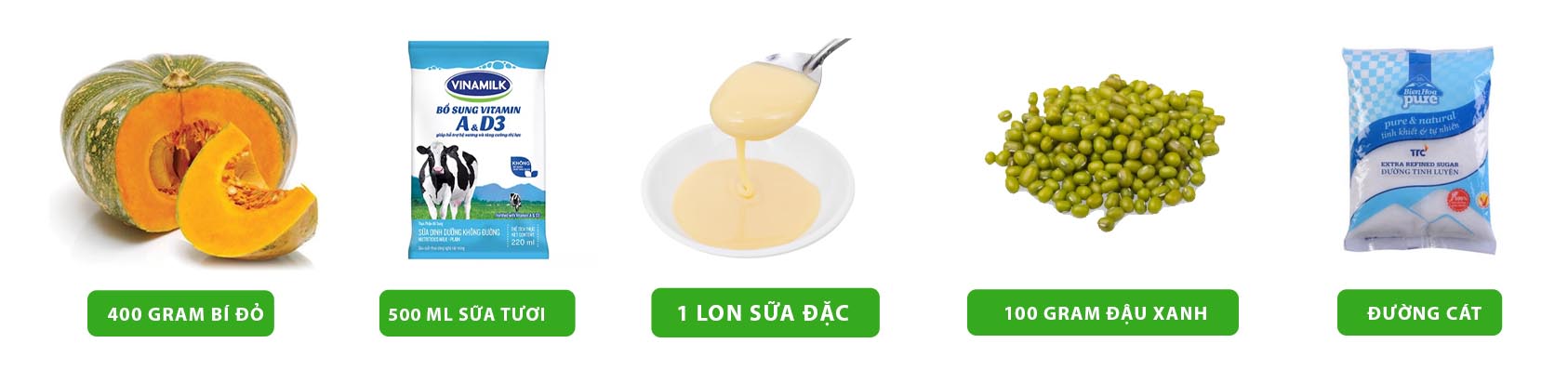 Nguyên liệu cần chuẩn bị cho món sữa bí đỏ đậu xanh: