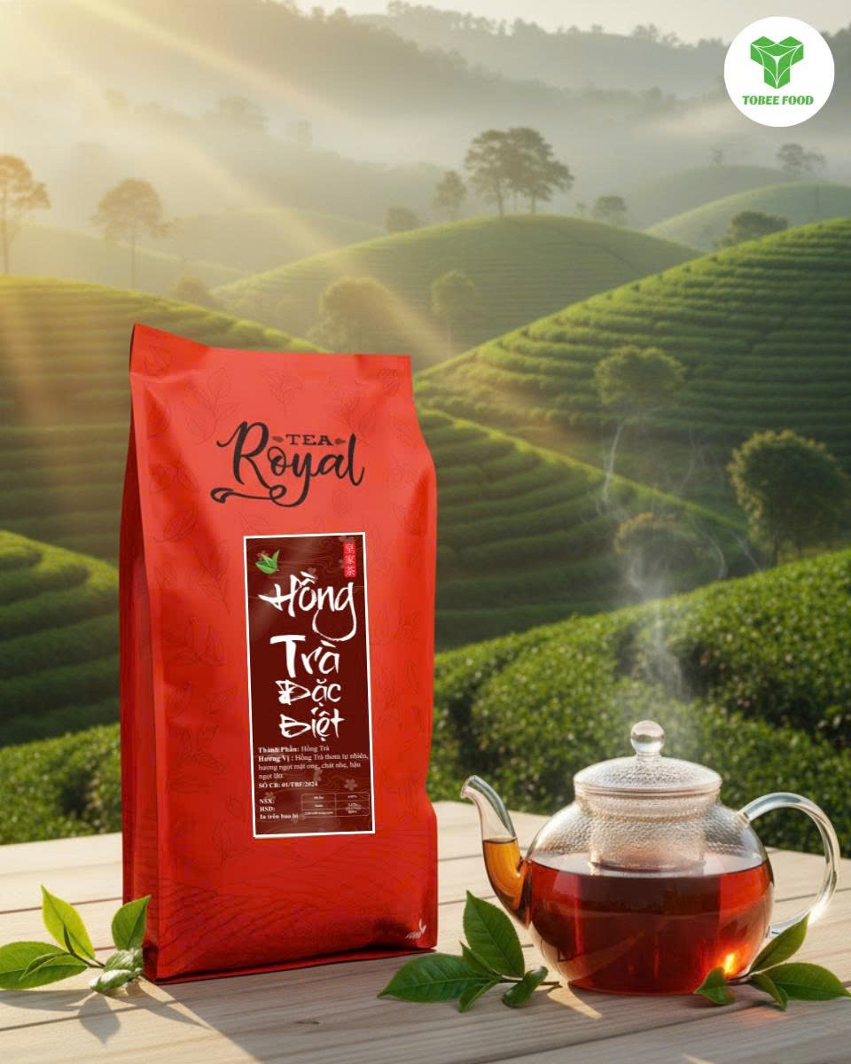 Hồng Trà Đặc Biệt Royal của Tobee Food được chọn lọc từ những búp trà tươi ngon tại vùng đất này, qua quy trình chế biến khép kín hiện đại. Kết quả là sản phẩm mang hương vị đặc trưng: đậm đà, hậu ngọt, hương thơm tinh tế rất phù hợp cho ngành pha chế đồ uống.