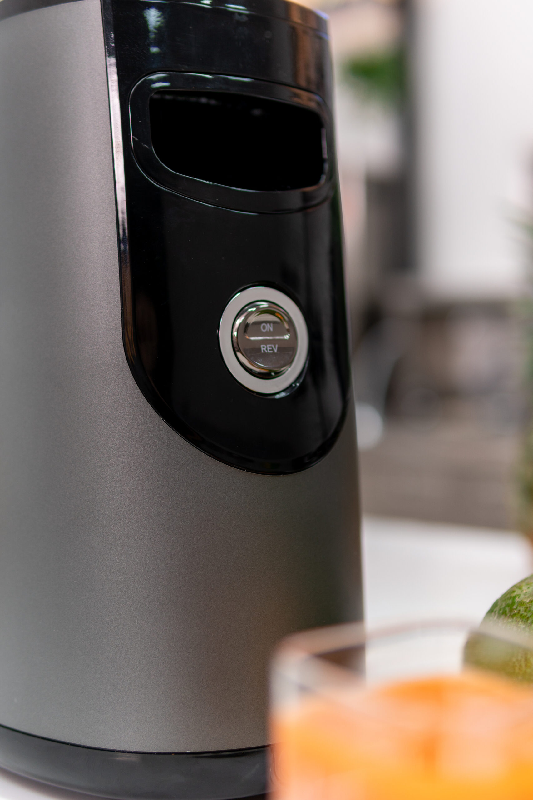 Uniblend E250 cũng được trang bị nút REV giúp đẩy nguyên liệu lại lên phía trên. Nút REV được sử dụng để khắc phục tình trạng kẹt nguyên liệu ở máy ép chậm, giúp nguyên liệu xoay ngược lại, tránh tình trạng bị kẹt trong máy.