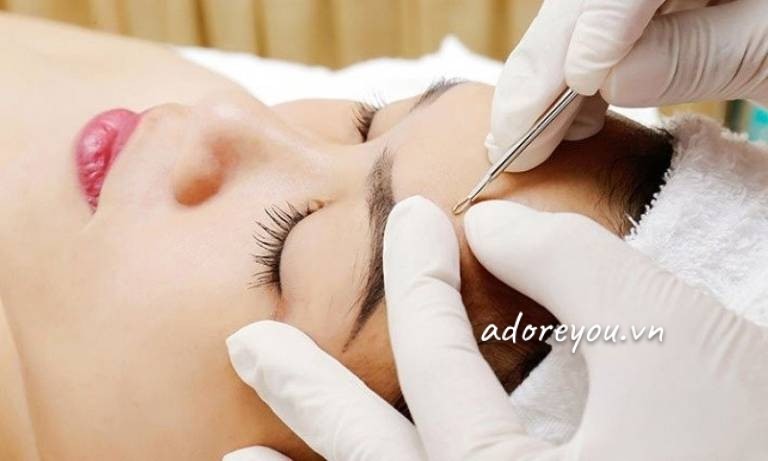 Sau khi đã xông hơi với nước nóng một thời gian và nhân mụn cũng đã trồi lên bề mặt da thì lúc này bạn tiến hành lấy nhân mụn bằng các dụng cụ chuyên nghiệp.