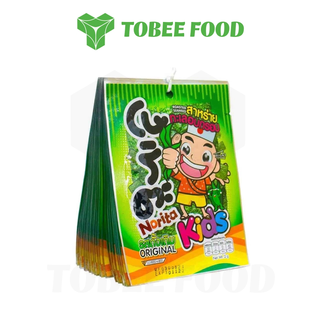 Thành phần: Rong biển 84,5%, Palm Olein 9,0%. Gia vị Nhật Bản chính gốc 6,5%. Bột ngọt Natri Inosinate và Qinatri Quanilate.