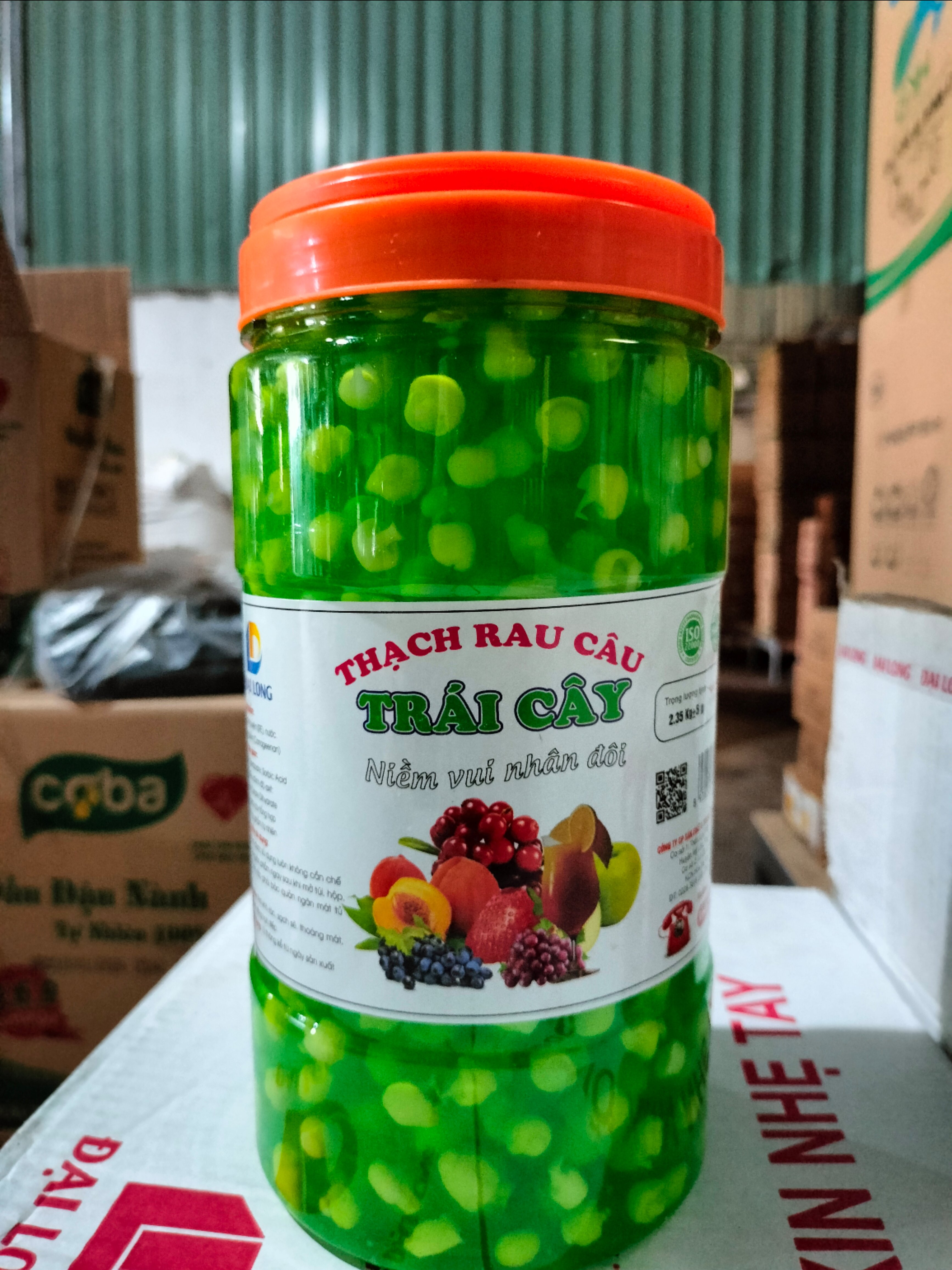 Thạch rau câu Hàng Huy (Việt Nam). Đây là một sản phẩm topping rất được ưa thích hiện nay. Thạch rau câu hương trái cây dai dai, thơm ngon hơn so với các loại thạch tự nấu khác.