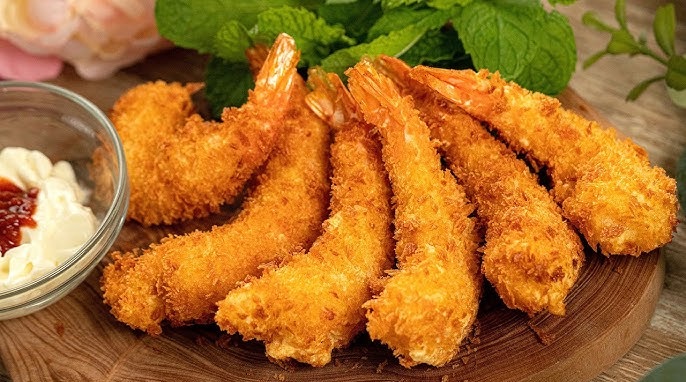 Tôm thẻ chiên xù là món ăn quen thuộc, dễ chế biến và hợp khẩu vị của nhiều người, đặc biệt là rất được các bạn nhỏ “ưu ái”. Tôm tươi được làm sạch, lăn qua bột chiên xù rồi chiên trong dầu nóng đến khi lớp vỏ vàng giòn, dậy mùi thơm. Khi cắn vào, bạn sẽ cảm nhận lớp vỏ giòn rụm bên ngoài hòa quyện cùng phần thịt tôm ngọt mềm bên trong. Món này ngon nhất khi chấm cùng tương ớt, sốt mayonnaise hay sốt chua ngọt, vừa đậm đà vừa bắt miệng.