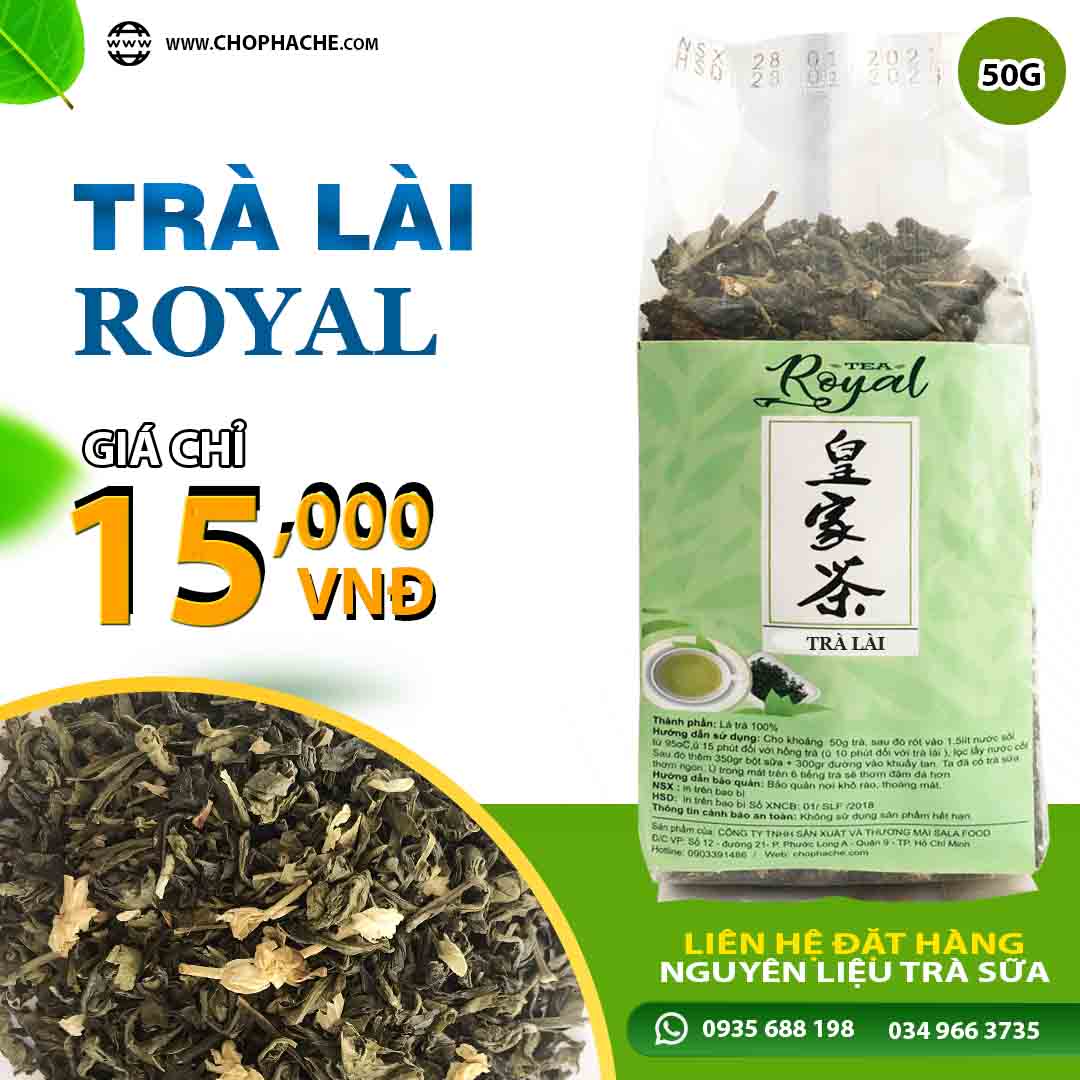 Trà Lài Royal Được chiết xuất từ trà xanh tự nhiên ướp hương hoa nhài tinh khiết, trà Lài mang đến một hương vị nhẹ nhàng và tinh tế khó quên ngay từ lần đầu thưởng thức. Đó chính là sự kết hợp hoàn hảo của hương hoa nhài thanh tao và vị tiền chát hậu ngọt đặc trưng của dòng trà pha chế hiệu. Trà lài Royal chính là lựa chọn phù hợp dành cho các hộ kinh doanh trà sữa.