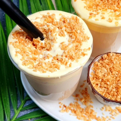 - Vụn dừa nướng có mùi thơm đặc trưng dùng làm món trà sữa dừa trứng nướng và làm topping cho các món bánh nướng, chuối phủ vụn dừa chiên, xôi, thạch, sinh tố... giúp tăng thêm hương vị các món ăn.